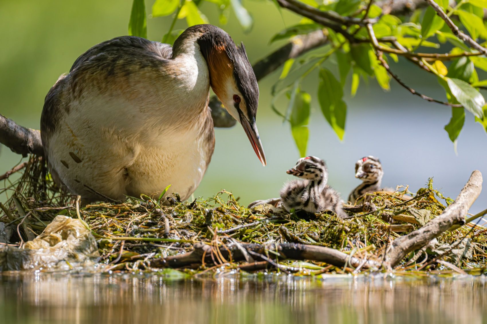 поганка, большая поганка, птенцы, чомга, птицы, Руслан Pl