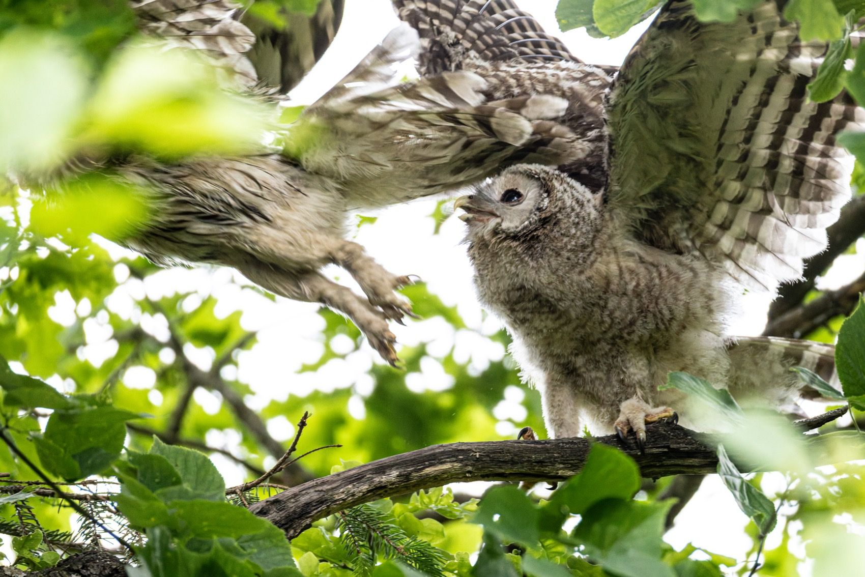 Да, но родитель был непреклонен) Судя по красному клюву у родителя, он приносил еду, но видно ее было мало.