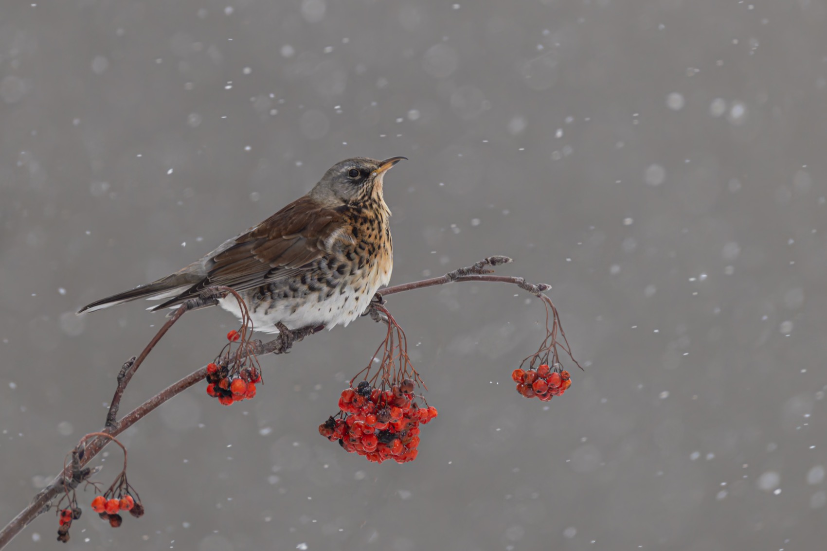 рябинник, дрозд, снегопад, птицы, рябина, Ruslan Pl