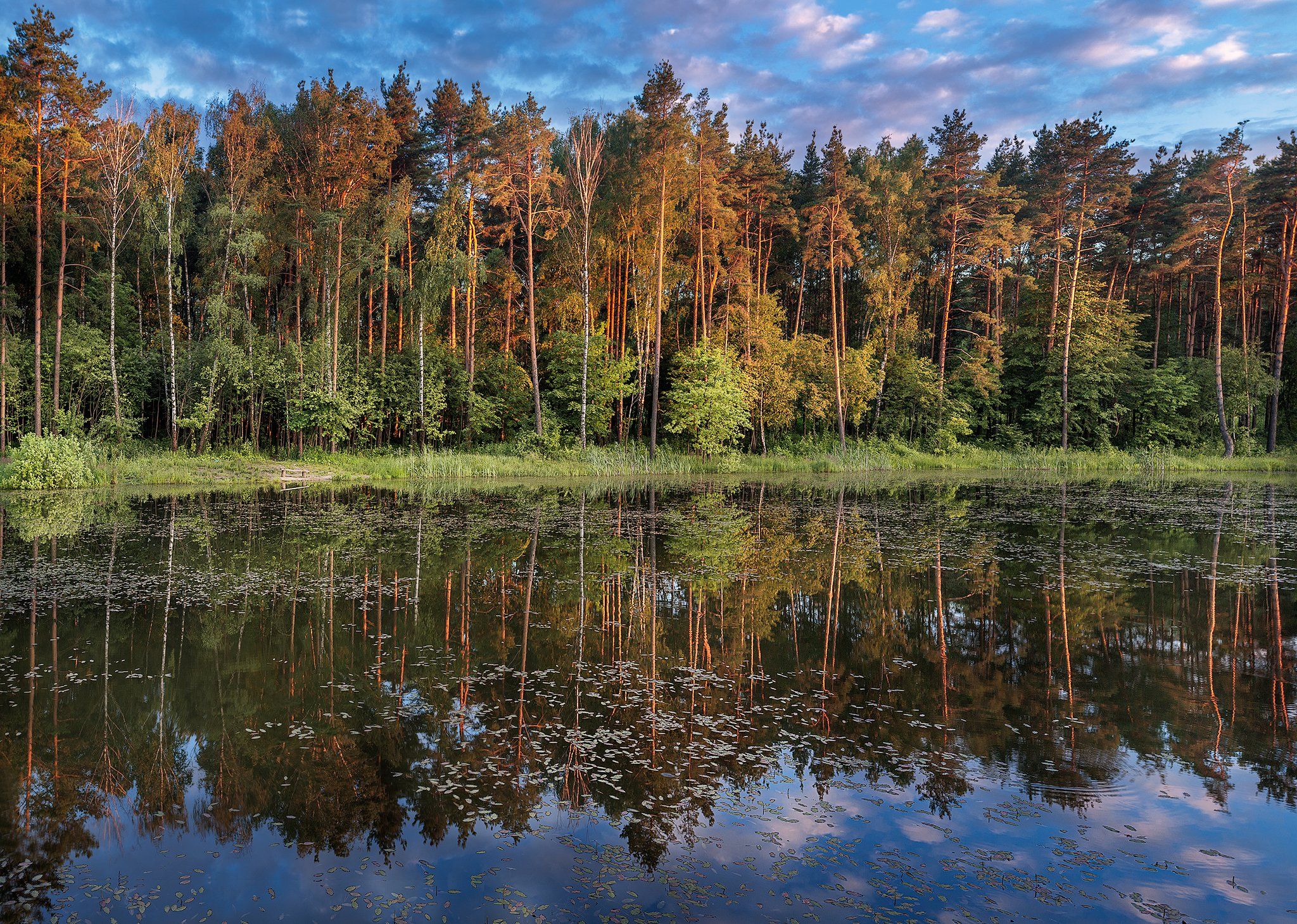 закат, лес, сосны, озеро, отражения, небо, облака, природа,, Андрей Огнев
