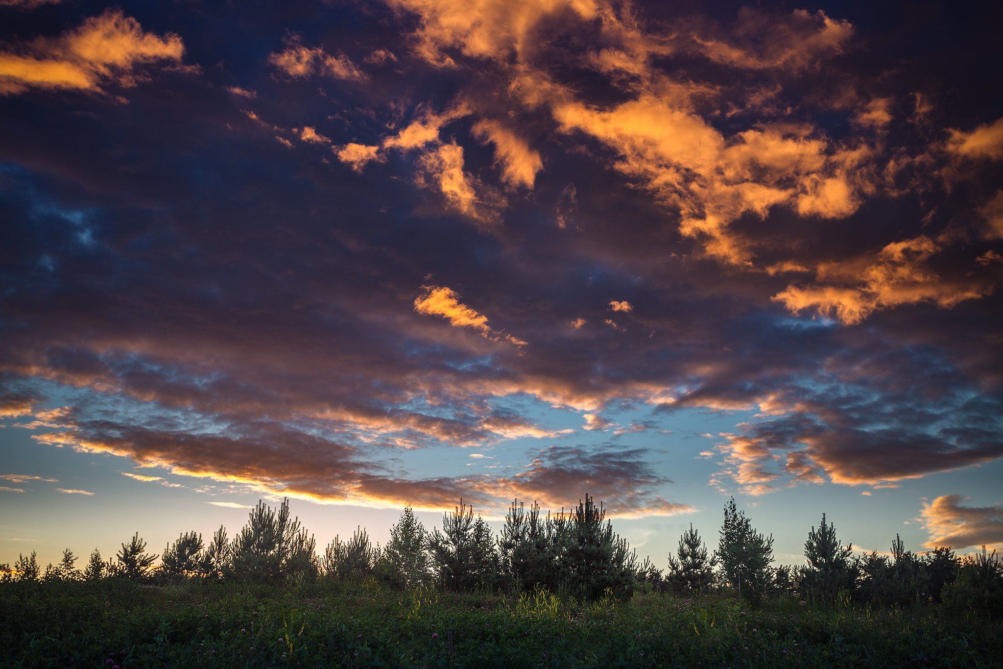закат, лес, деревья, облака, небо, свечение, цвет, свет,, Андрей Огнев