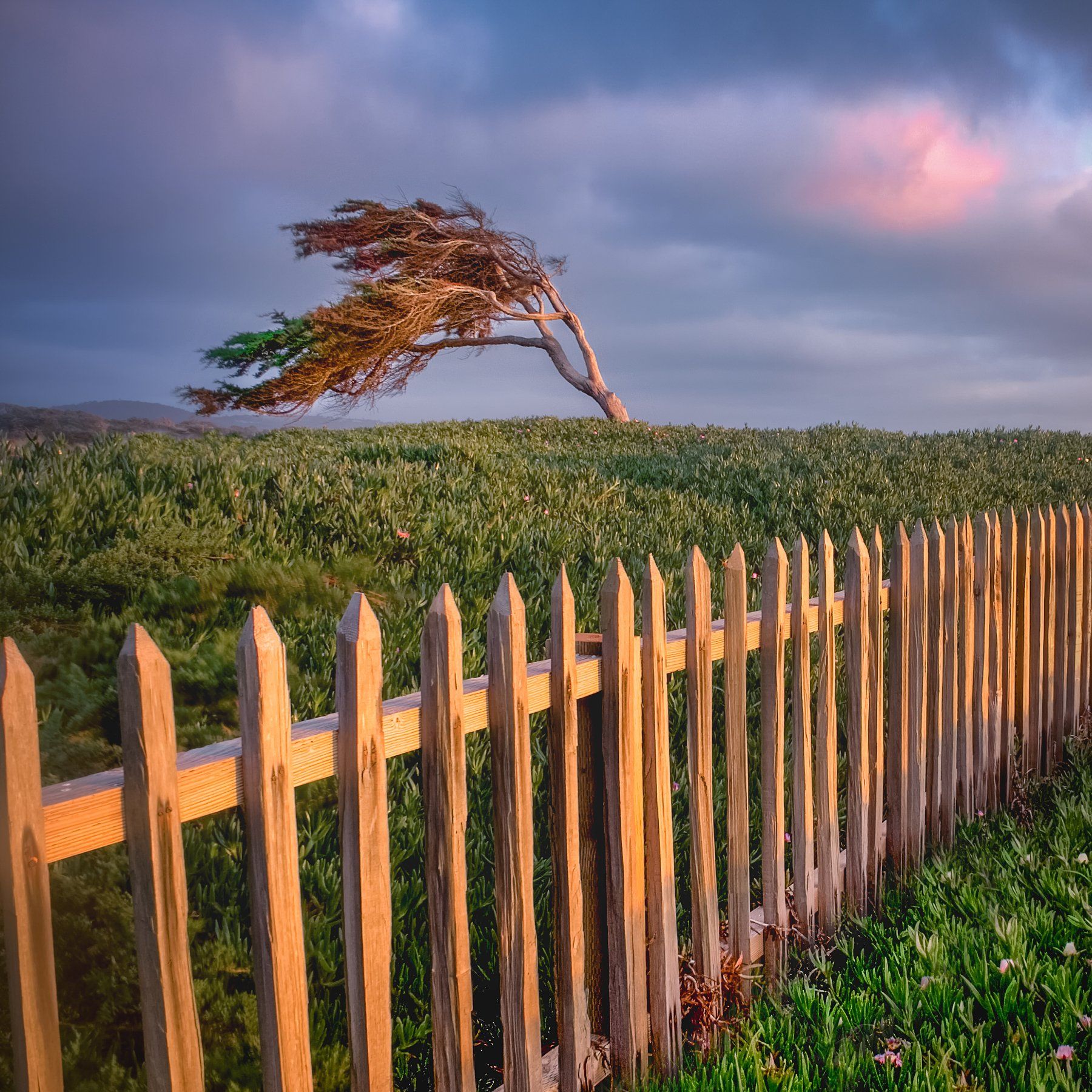 дерево, ветер, забор, закат, 17 mile drive, калифорния, Андрей Огнев