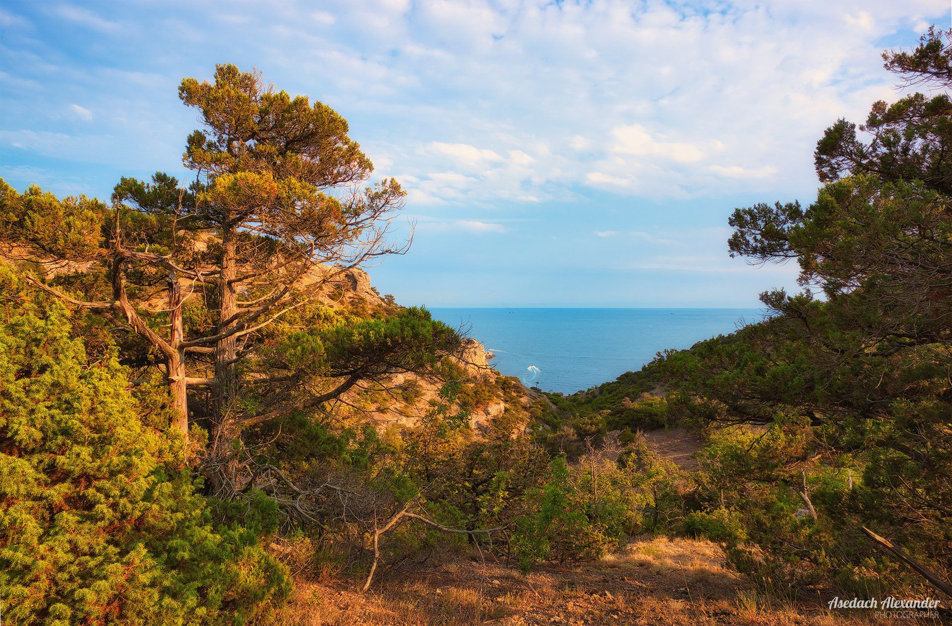 крым, новый свет, закат, деревья, солнце, небо, Александр Аседач