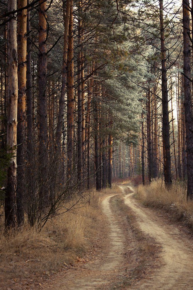 Дорога, Ель, Лес, Осень, Хвойный, Александр Аседач
