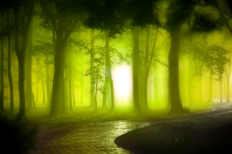 это из-за отражения света от листьев и усиления отражения от частичек гари + съемка ночью. каюсь, сатурейшн подкрутил порядочно, но только для усиления того что было.