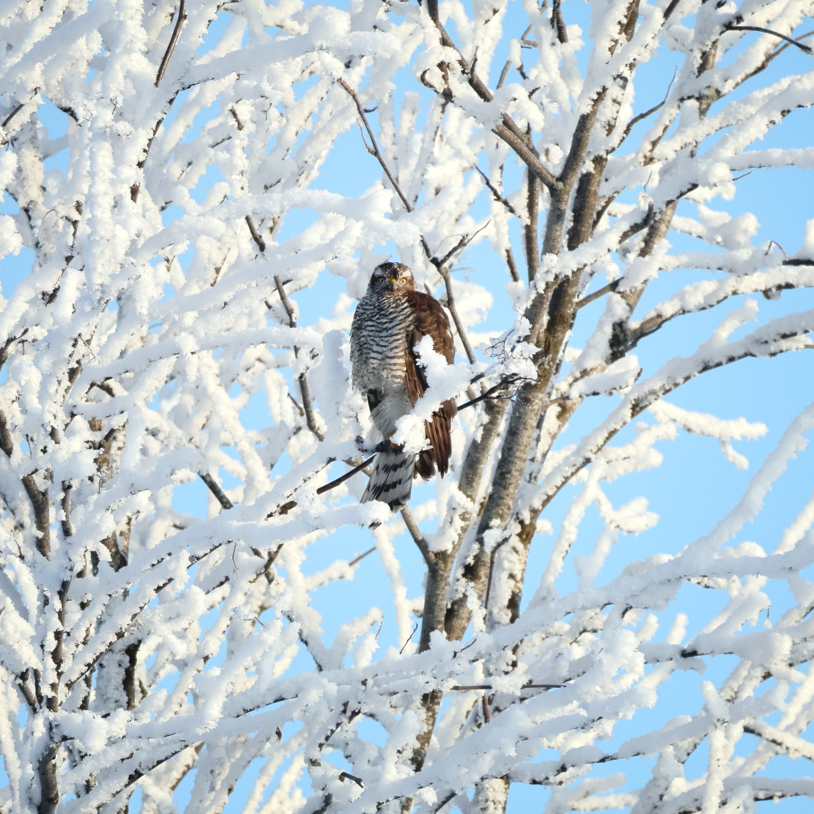 Ястреб-перепелятник в мороз -30...