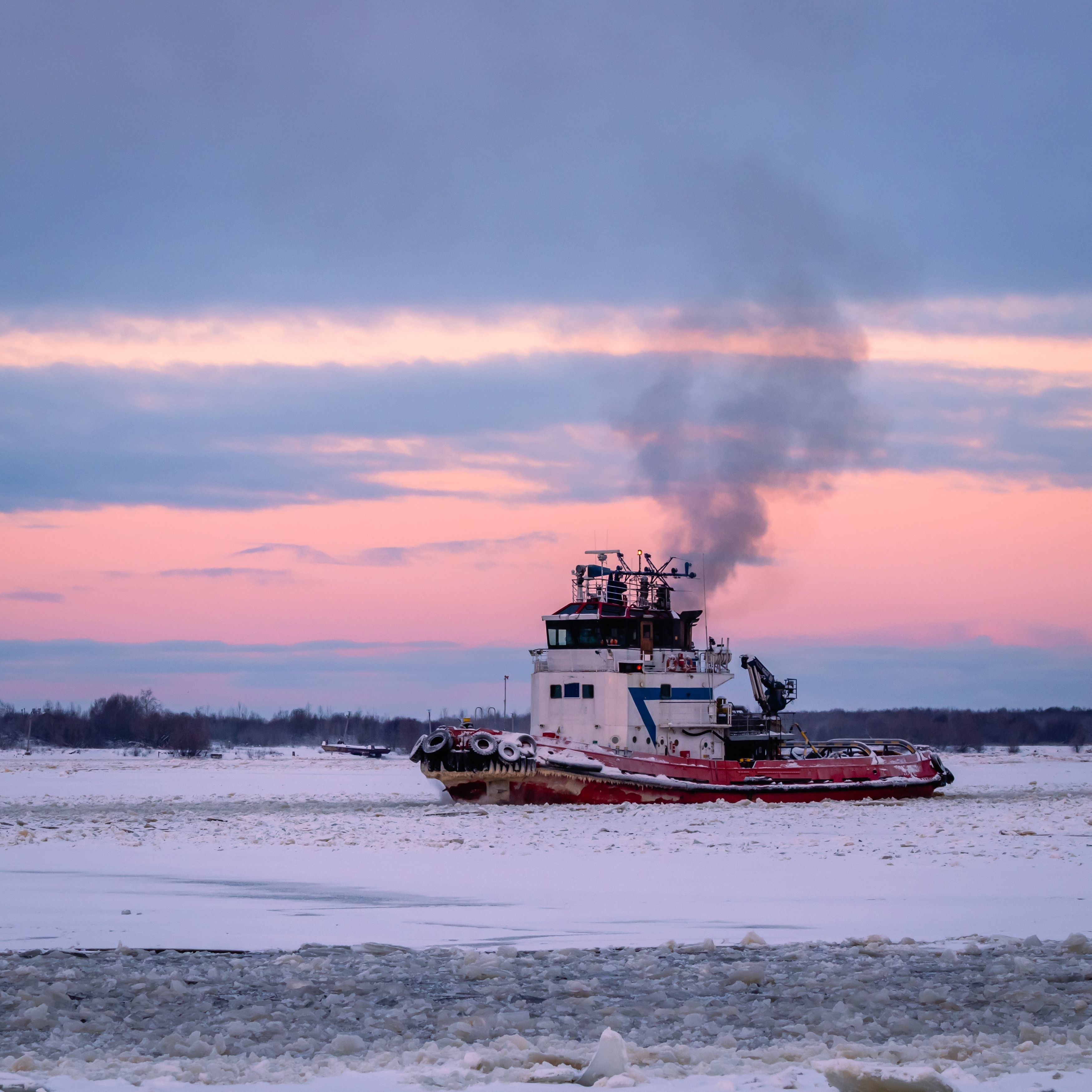 север, река, зима, лед, навигация, буксир, Титов Александр