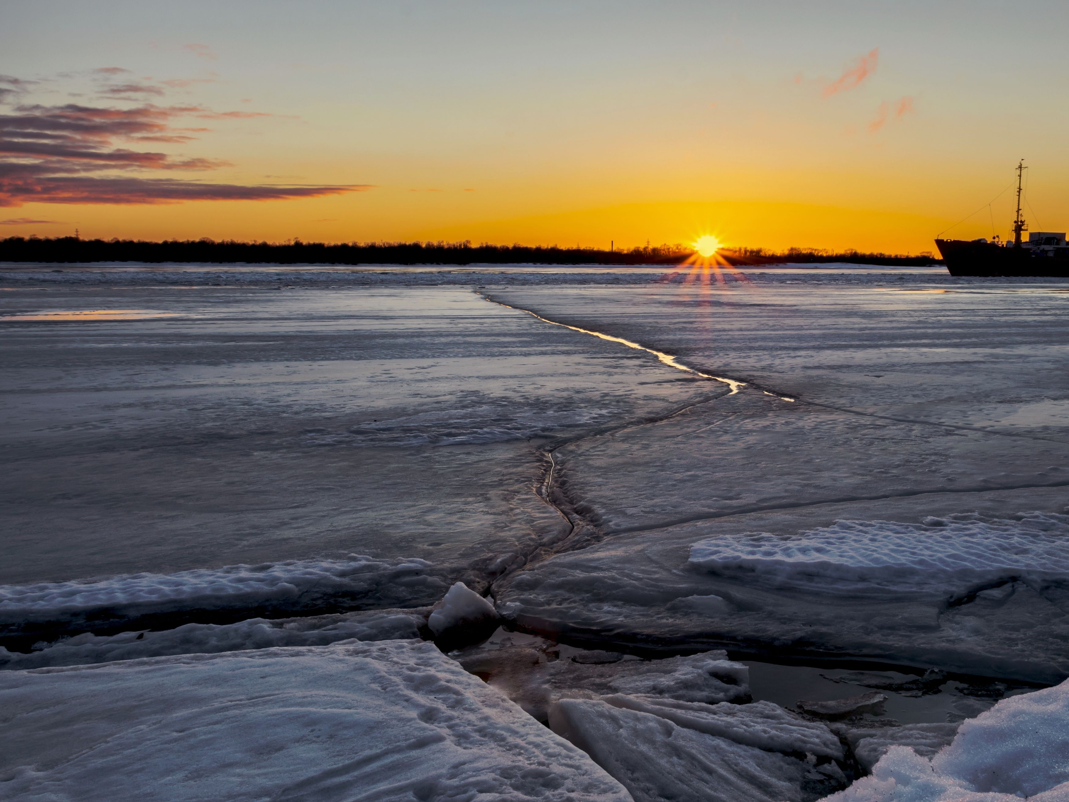 природа, весна, вечер, река, лед, закат, навигация, пейзаж, Титов Александр