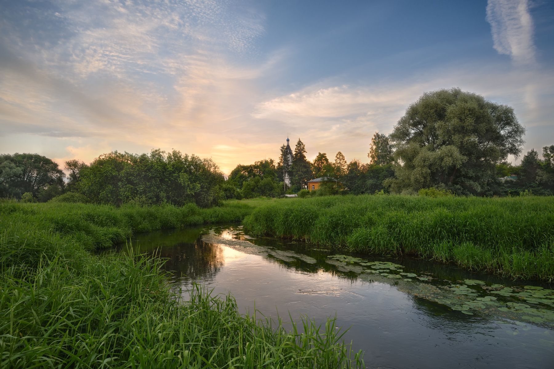 вечер,закат,река,церковь,небо,облака, Виталий Полуэктов