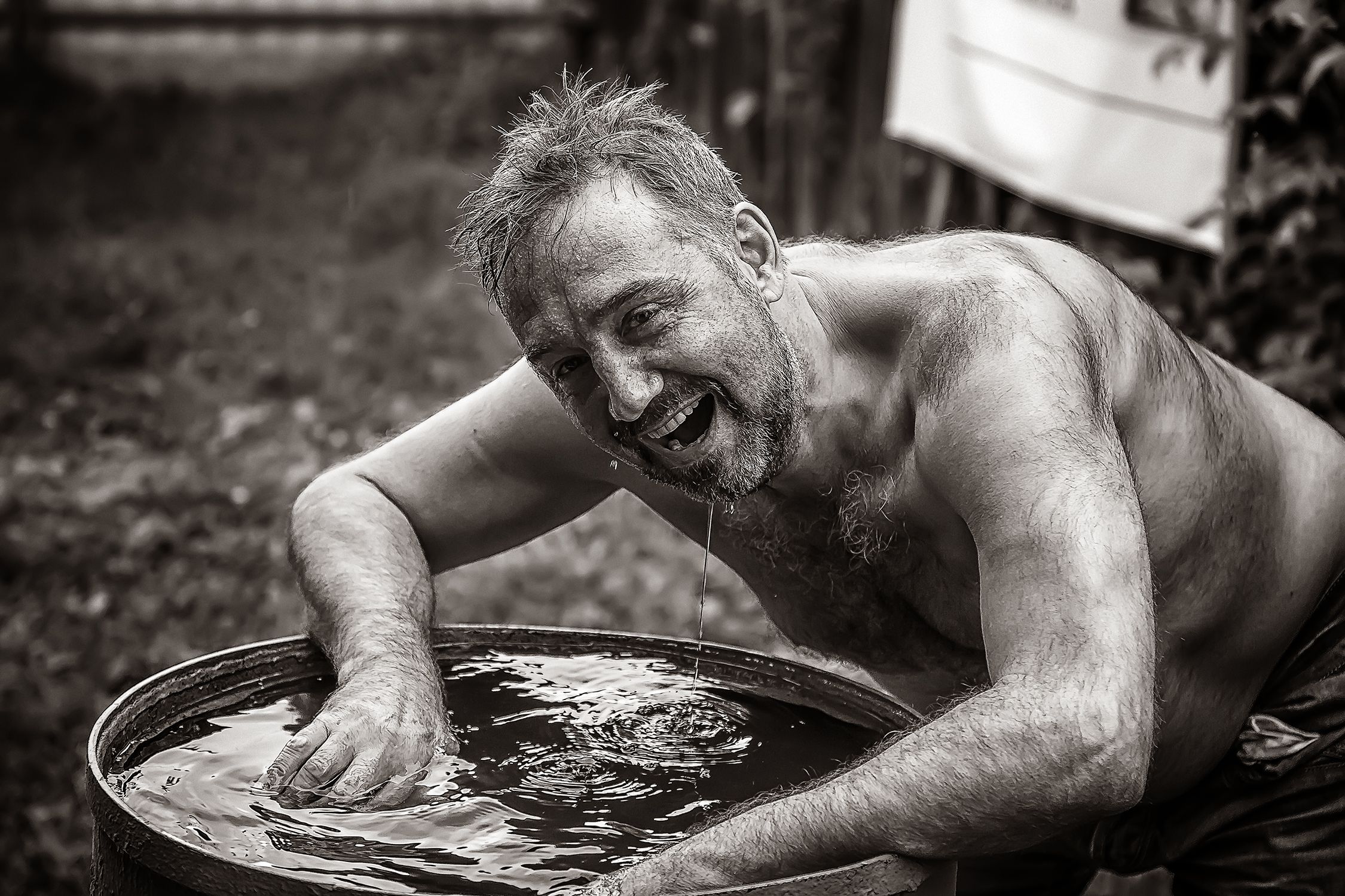 жанр, жанровый портрет, человек, мужчина, жара, бочка , вода, капли, Алексей Трифонов