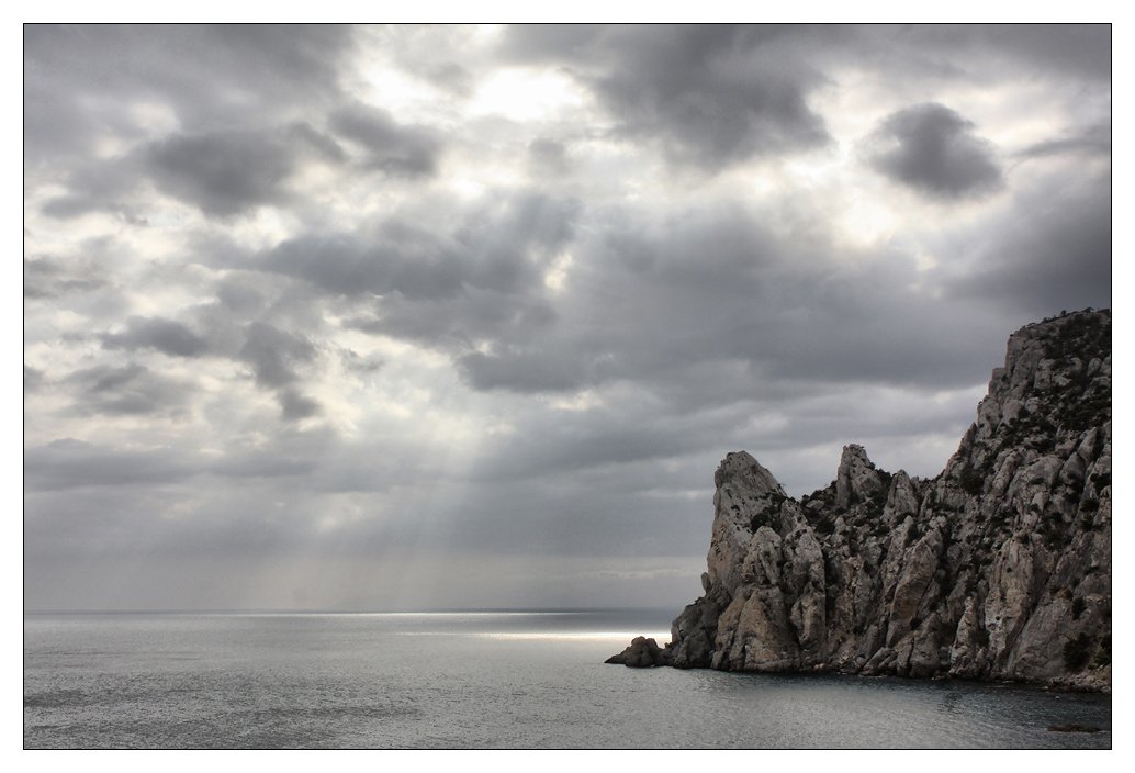 Наскільки я пам'ятаю, ТЗ на перешийку м. Капчик, і нижче в кадрі була б лише вода, а тут акцент на небі з променями і все цікаве знизу і так попало в кадр. Ну і мені просто подобається мало низу і багато верху. :)