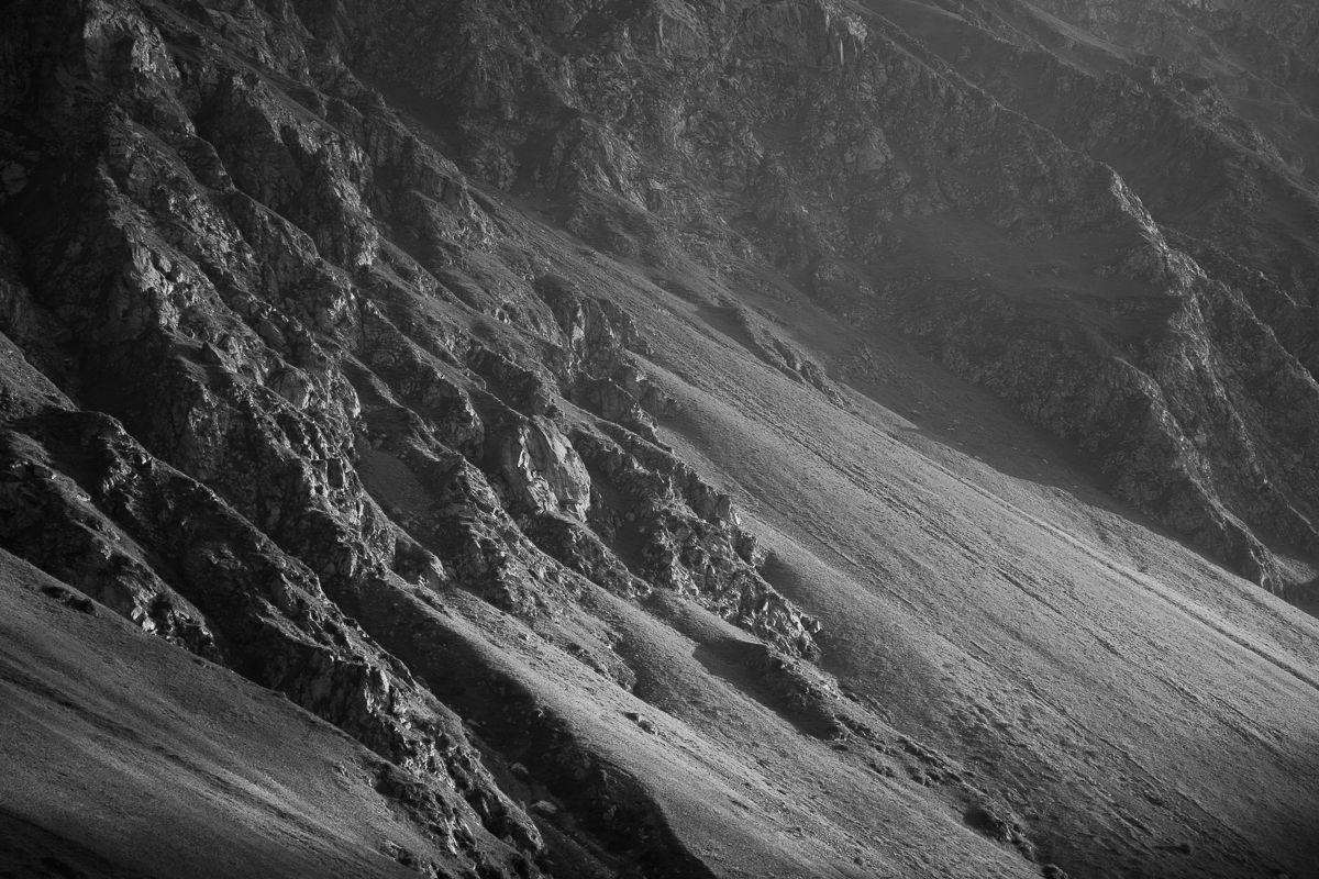 Тьма и свет - вечная борьба, борьба за жизнь, за само существование. Как никогда остро ярко проявляется заметна она в горах. Черный камень - белизна снежных шапок, чернеющая шель скальной трещины - белесый туман, темные, обросшие вековым мхом валуны - молоко горных рек.