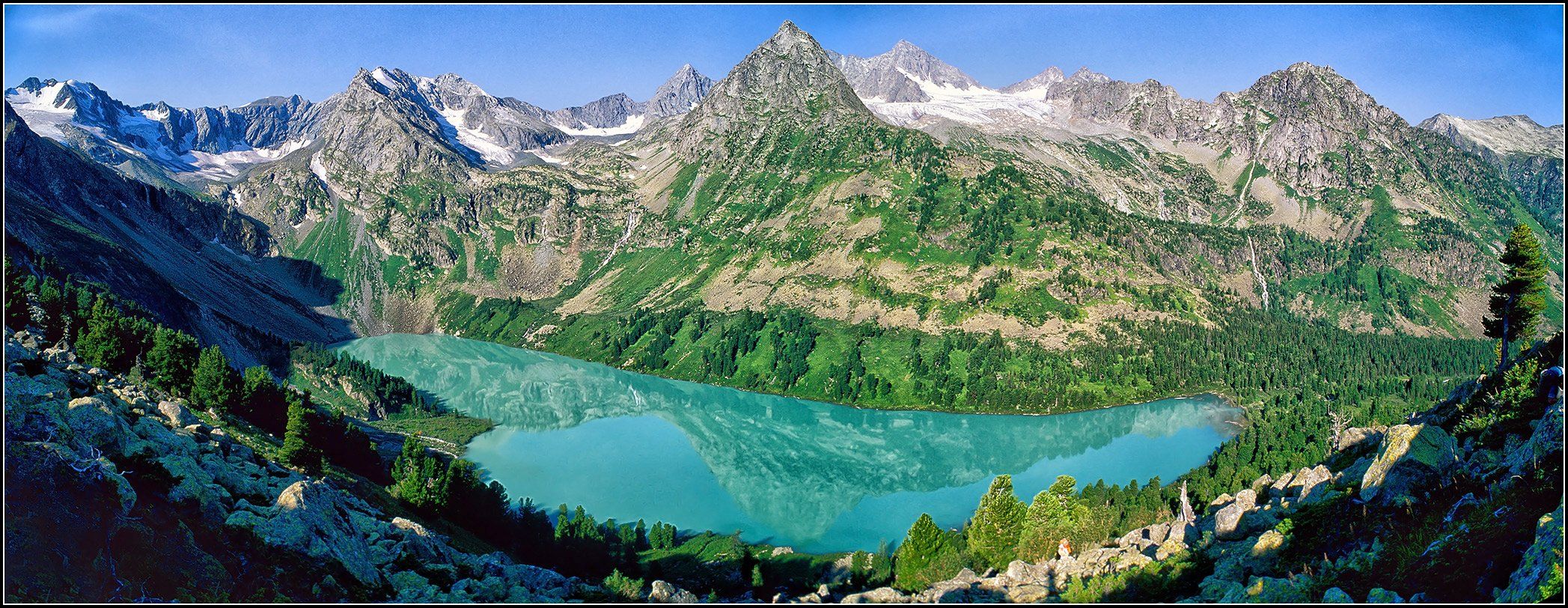 алтай, оз.в.мультинское, панорама, скан с плёнки -1996 г., АНАТОЛИЙ ДОВЫДЕНКО