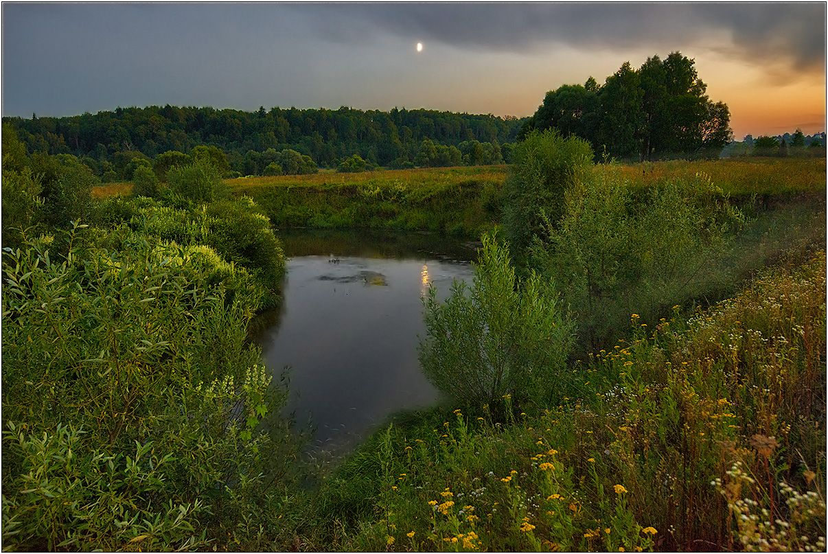 калужская обл., р.протва, вечер, луна, АНАТОЛИЙ ДОВЫДЕНКО