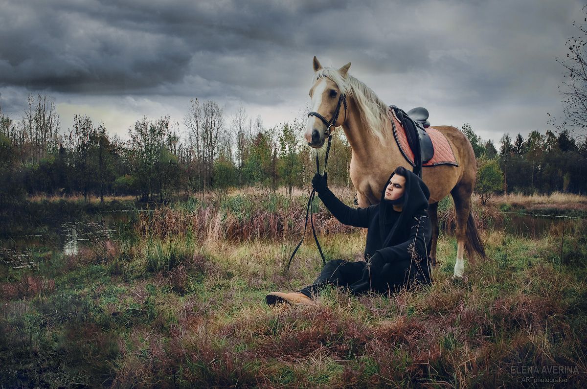 фотосессия с лошадьюсказочная фотосессиялошадьстранниккапюшонготика