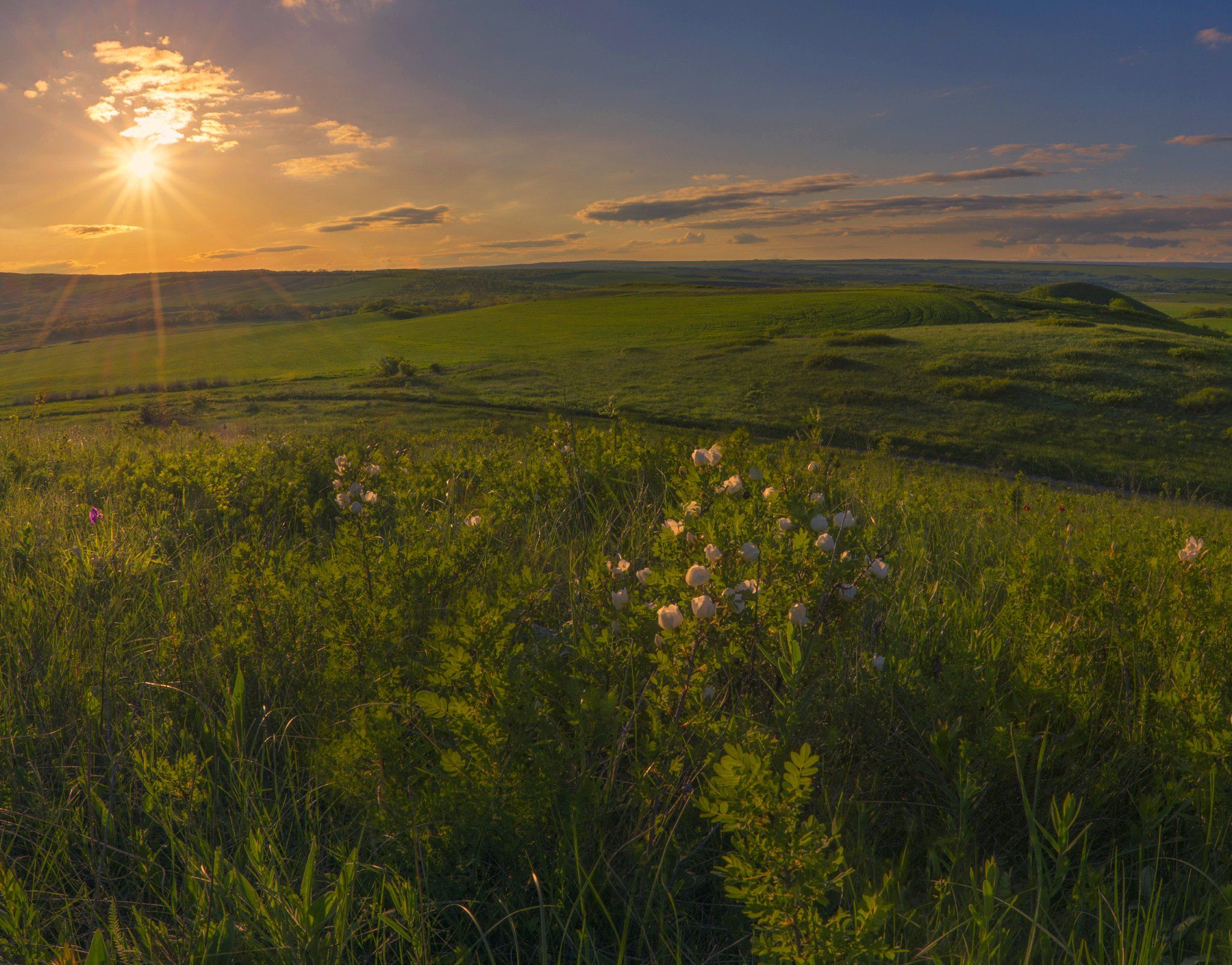 шиповник,закат,весна,пейзаж, Елена Брежицкая