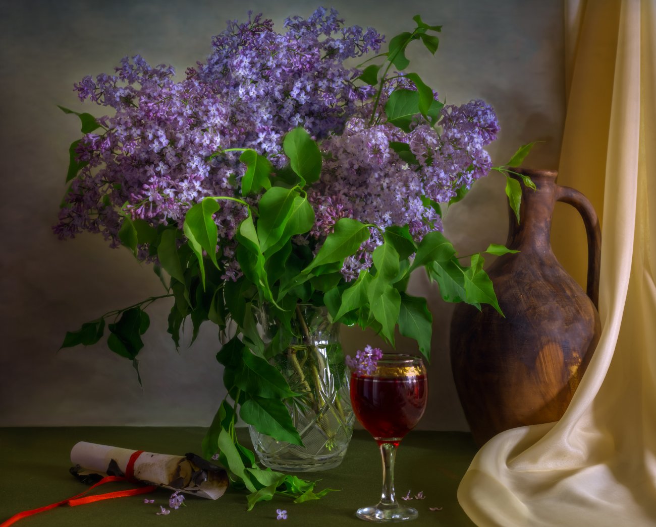 сирень,вино,бокал,натюрморт, Елена Брежицкая