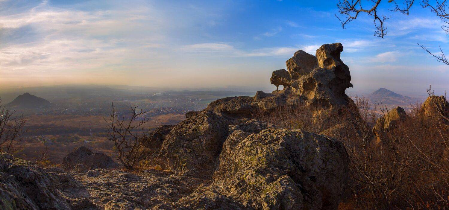 Орлиные скалы на горе Бештау - живописный скальный массив магматического происхождения, с каменными пузырями и кольцами. Свое название получили из-за причудливой формы своей вершины, напоминающей профиль орла.