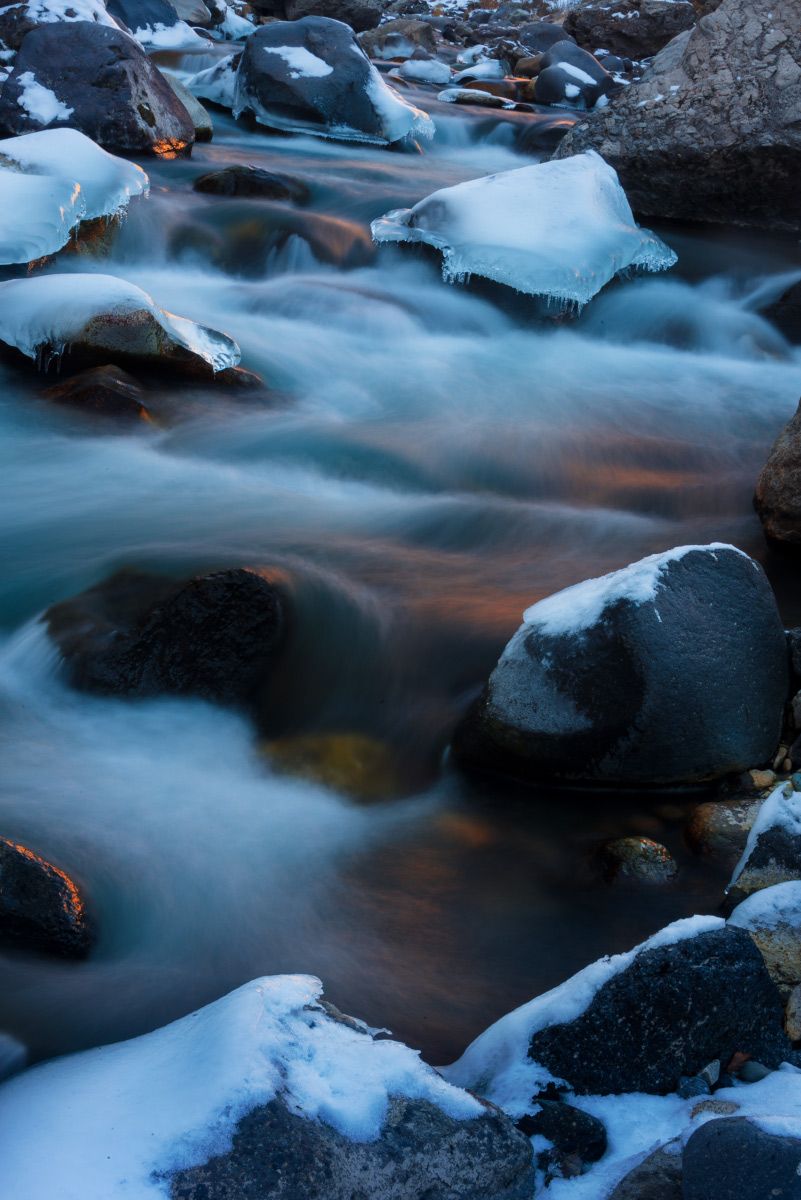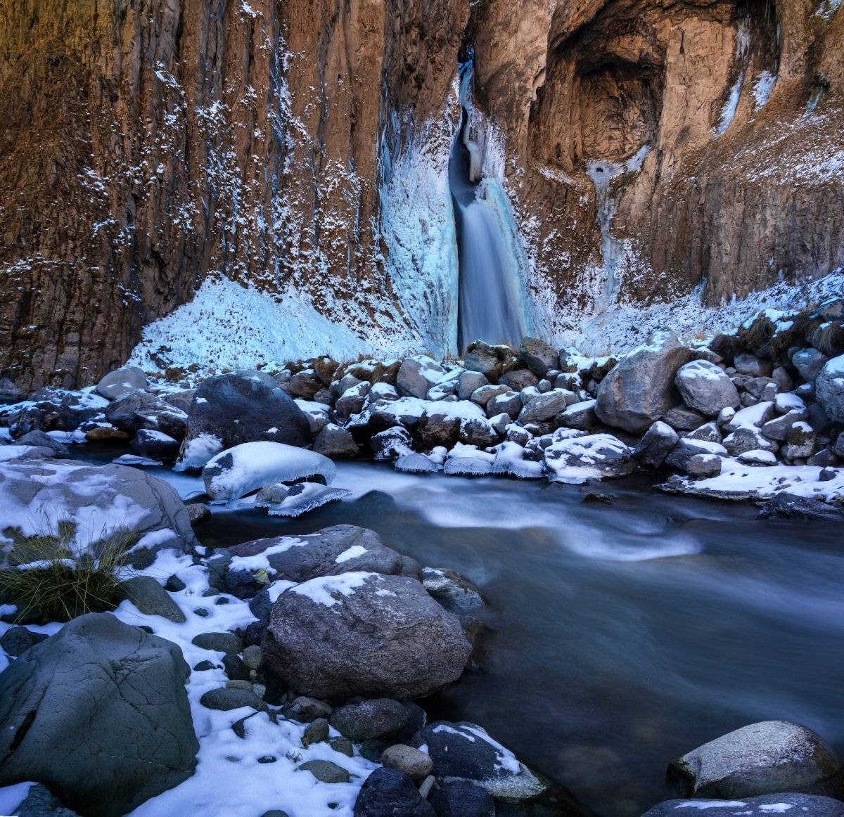 В горах уже вовсю царствует зима, в урочище Джилысу в Кабардино-Балкарии в шум водопада удивительно красиво вплетается песня ветра и, кажется даже слышно, как тихо звенит лед в речке...