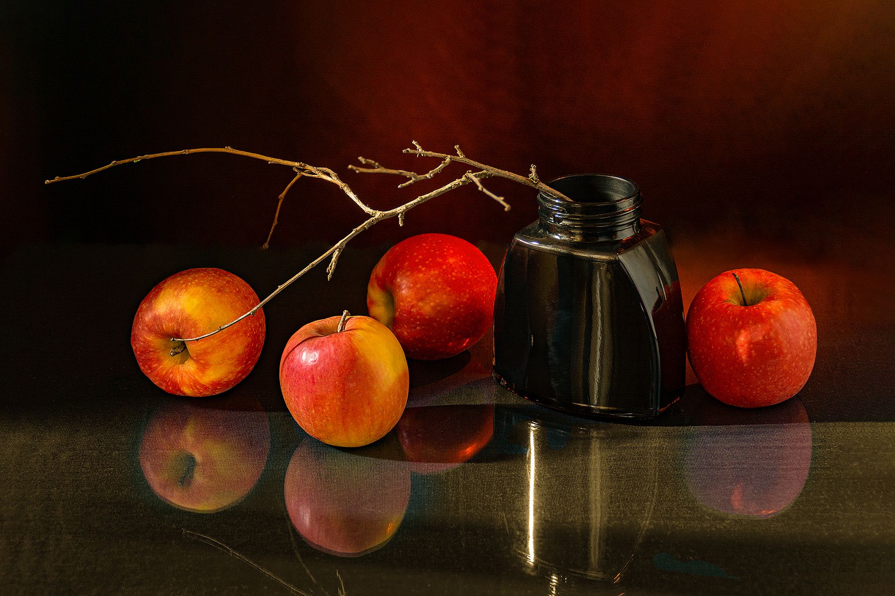яблоки, сухая ветка, пузырек, красный, чёрный, Баг Алексей
