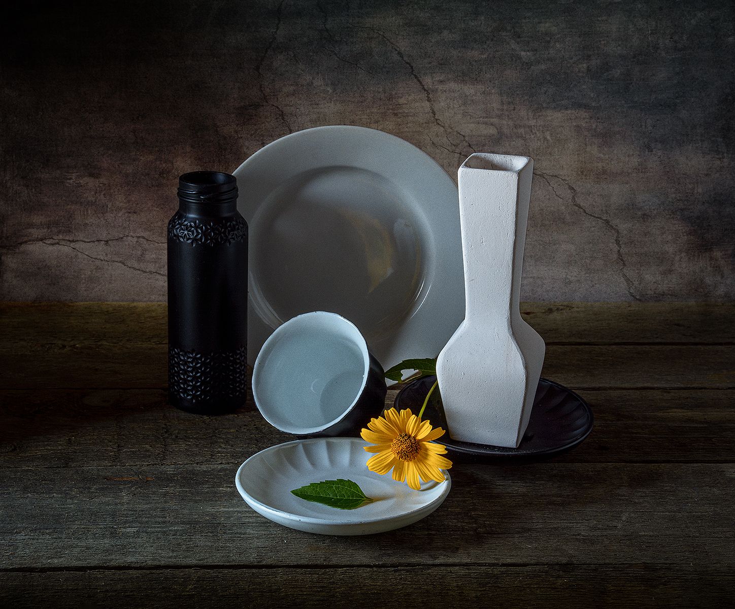 ваза, тарелка, блюдце, цветок, чашка, черный, белый, Алексей Бычков