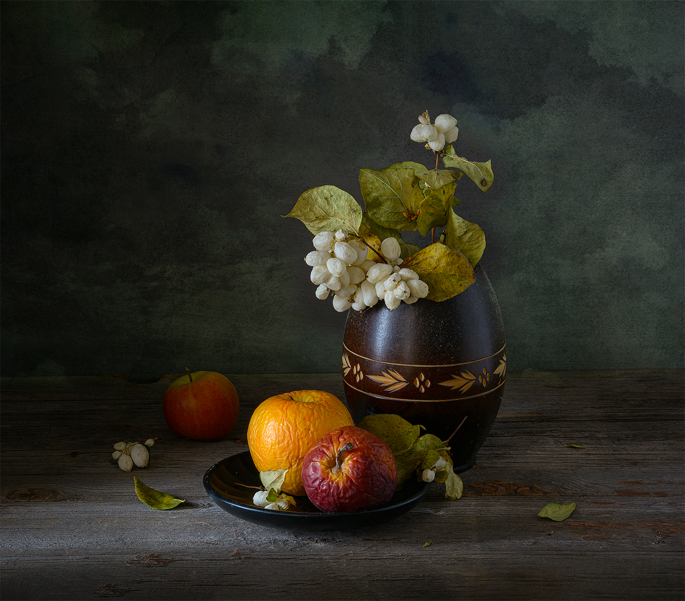 яблоки, блюдце, цветы, увядание, Алексей Бычков