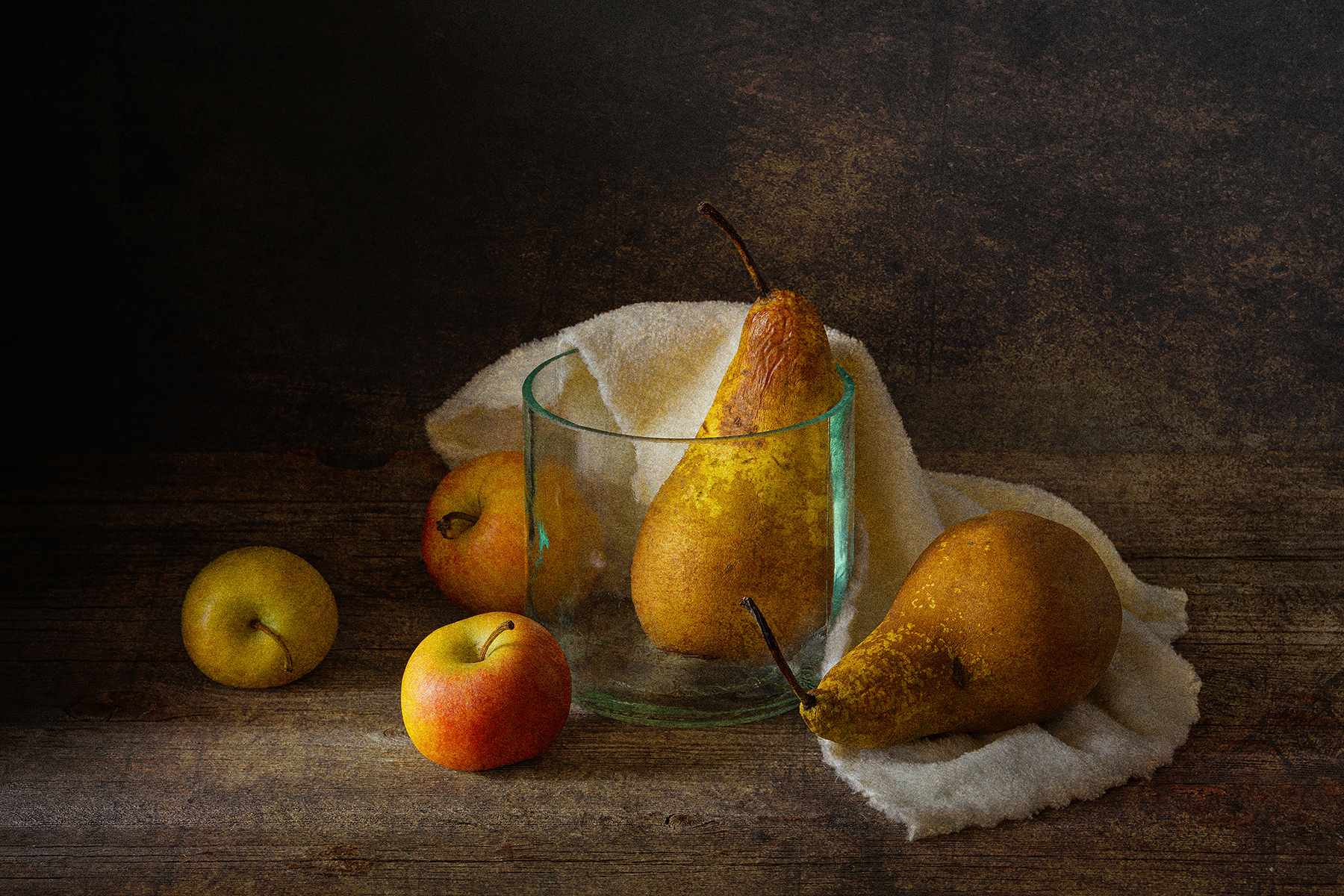 груши, яблоки, стеклянная банка, полотенце, Алексей Бычков