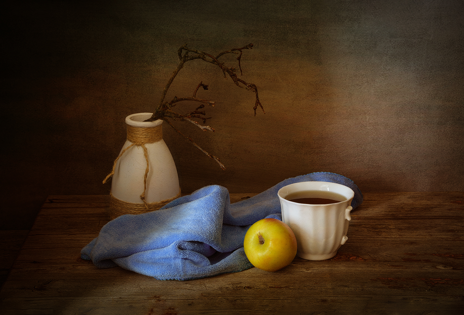 яблоко, чашка, кофе, бутылка, ветки, Алексей Бычков