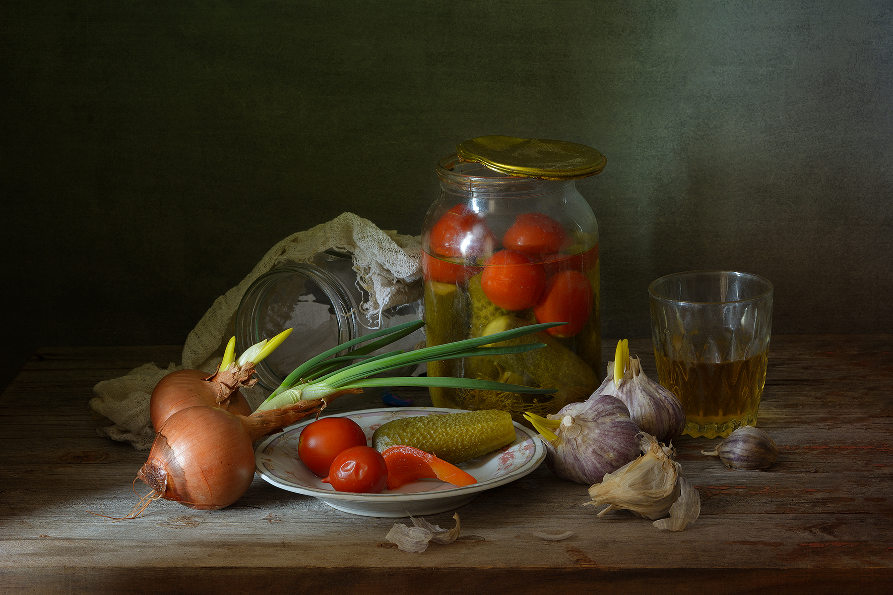 лук, чеснок, помидора, огурцы, банки, стакан, зимние запасы, Алексей Бычков