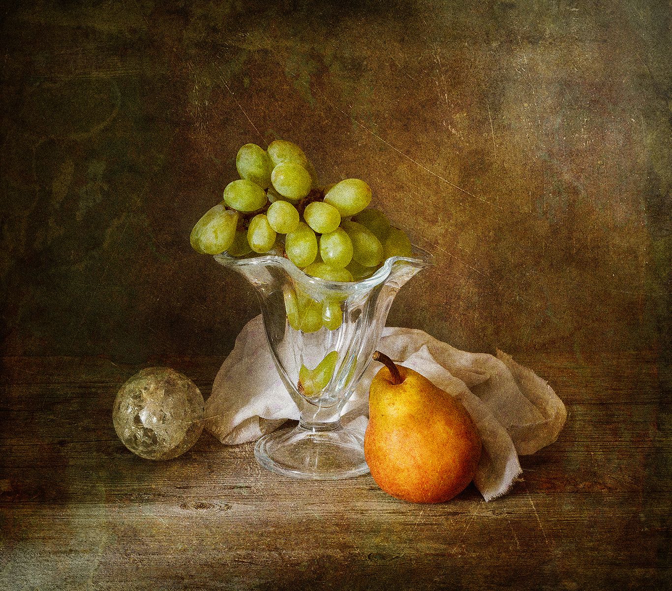 виноград, груша, стеклянный шар, тряпка, Алексей Бычков