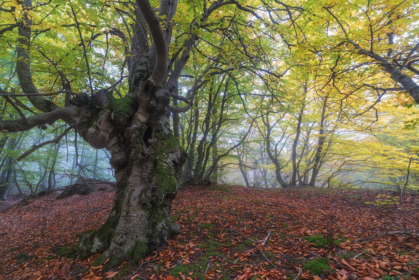 Дерево, Лес, Листья, Осень, Пейзаж, Природа, Туман, Dmitriy  Baginskiy