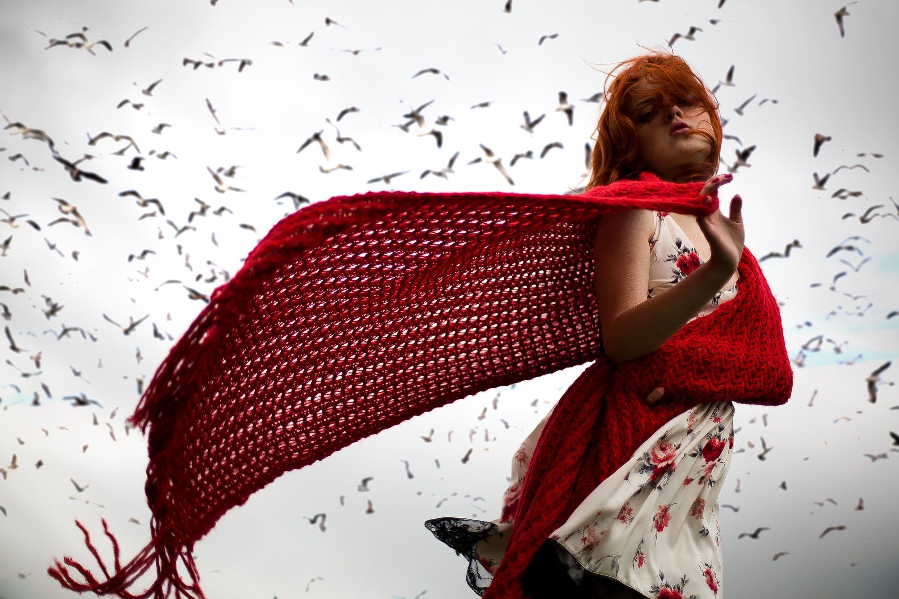 портрет, девушки, девушка, платье, птицы, Олег Багмуцкий