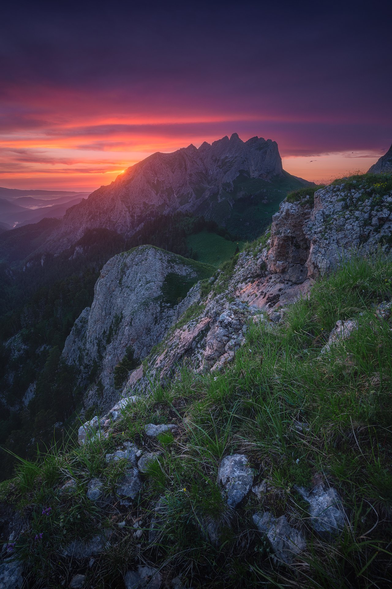 Окончание яркого заката на фоне горы Западный Ачешбок.