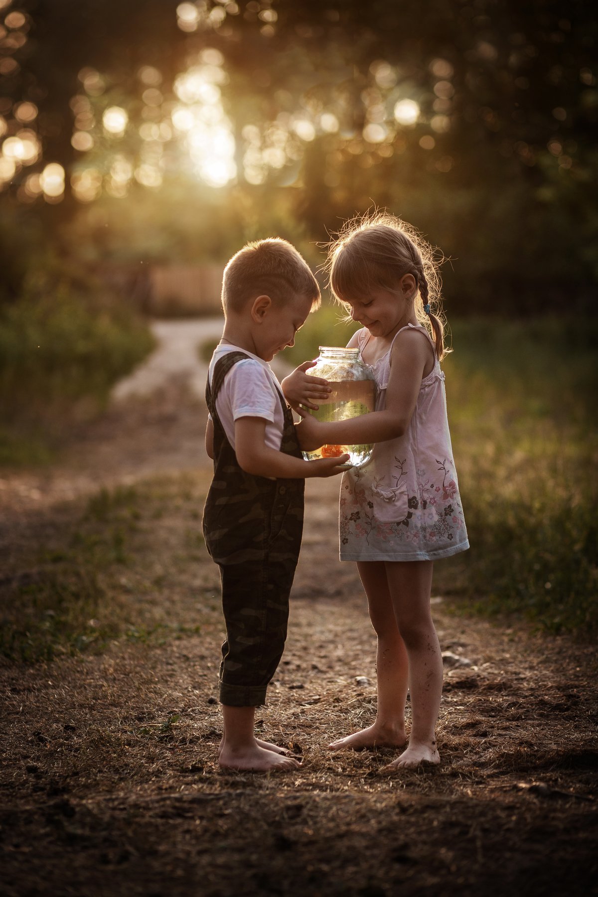 рыбка, золотая, золотая рыбка, банка, питомец, мальчик, девочка, детство, лето, прогулка, друзья, солнце, закат, вечер, улыбка, косички, Мила Шелест