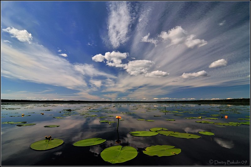 На меня поизводит очень приятное и сильное впечатление: нравится выбор точки съемки, распластанные по воде листья, яркая кубышка почти в центре на ПП и дорога из облаков. Все ладно и складно, на мой взгляд.