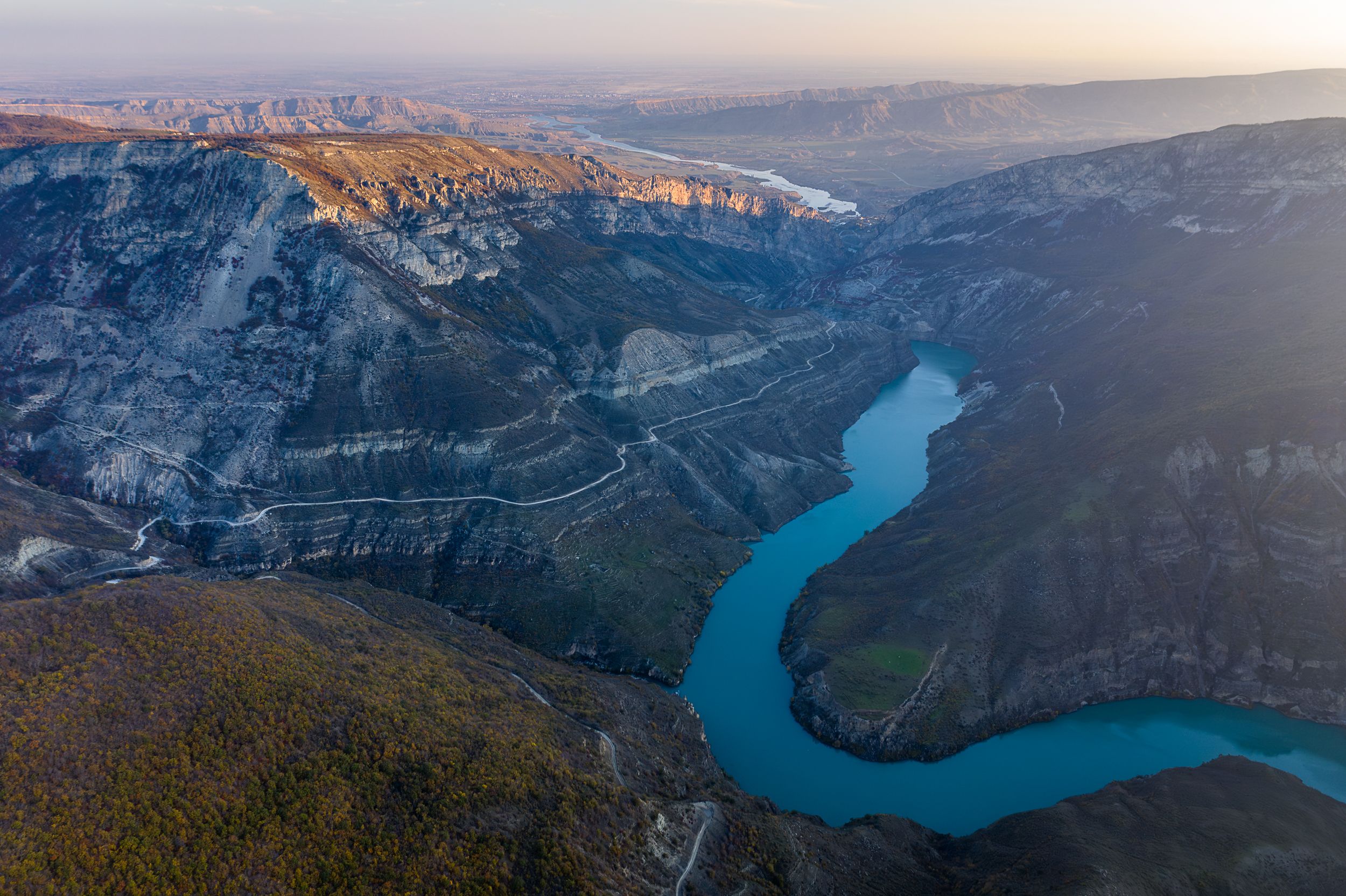 сулакский каньон, река, сулак, рассвет, восход, горы, дорога, Баландин Дмитрий