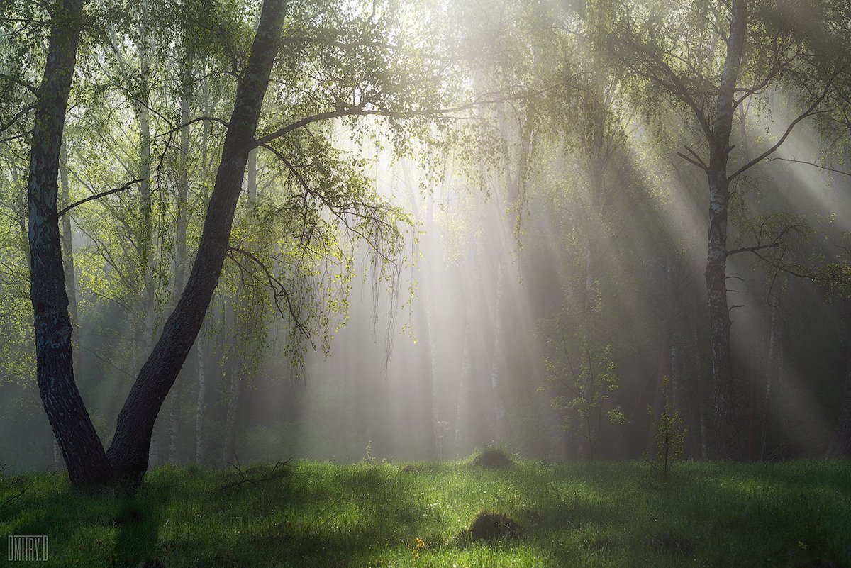 пейзаж, утро, березы, туман, пейзаж, лучи,, Дмитрий Доронин