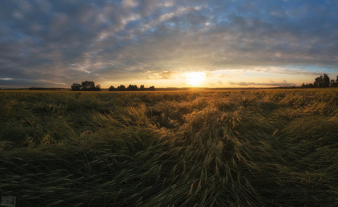 Так как лето у нас не удалось и дожди идут часто, и видимо после одного из них рожь хорошенько примяло. Дождь был еще днем и поле еще не высохло,и я нормально промок,пока выбирал место для съемки.