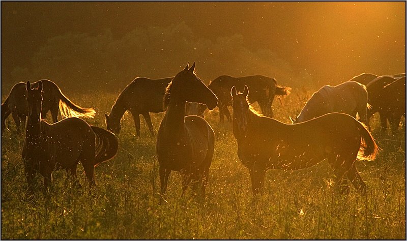 Лошадев жалко, а свет хорош. Какие ореолы создал. Светомузыка.