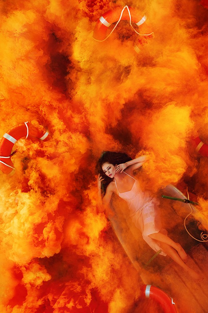 Девушка, Лодка, Облака, Огонь, Прогулка, Спасательный круг, Batoev Anton