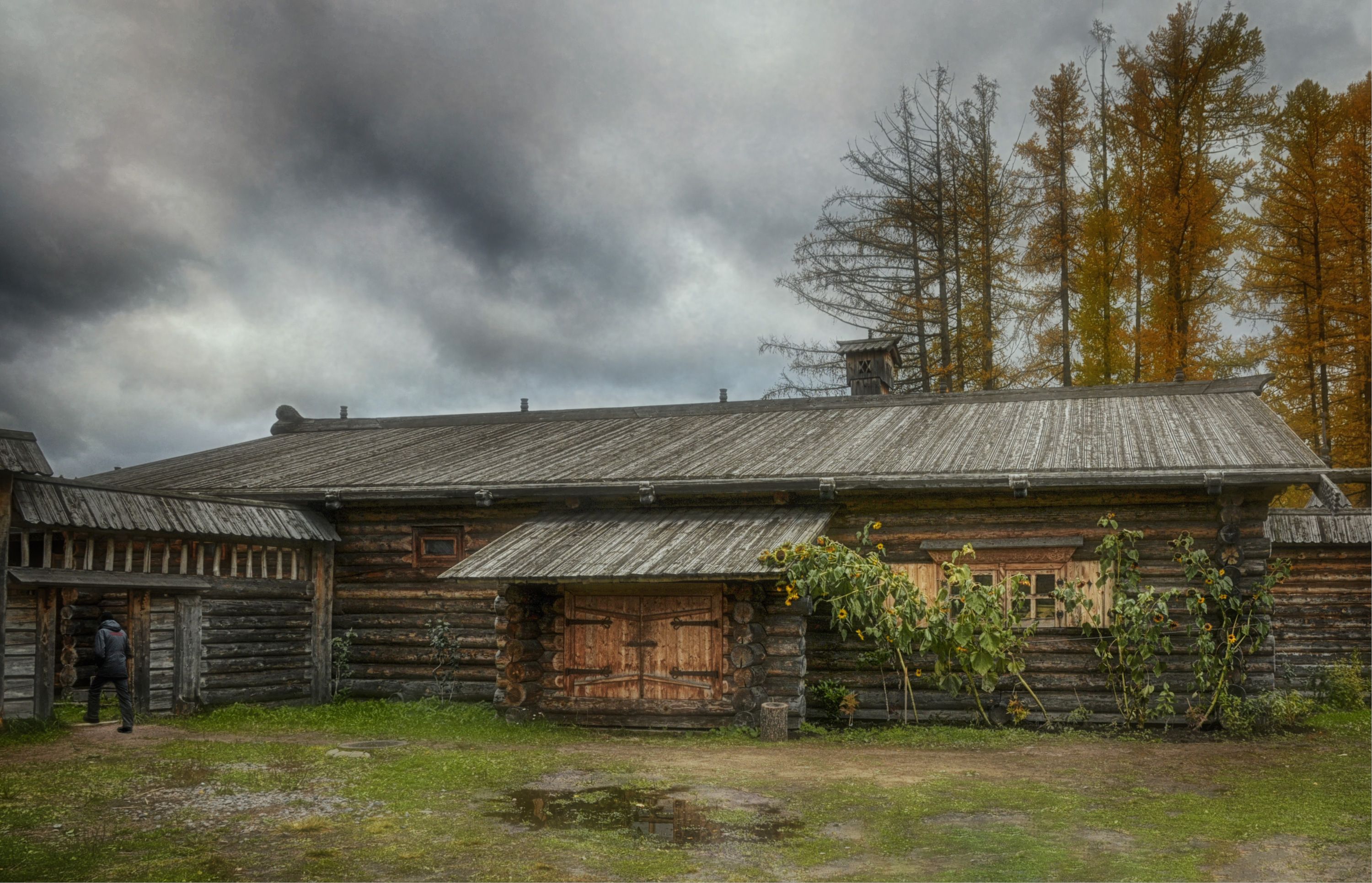 старые дома подсолнухи древья человек, Вера Петри