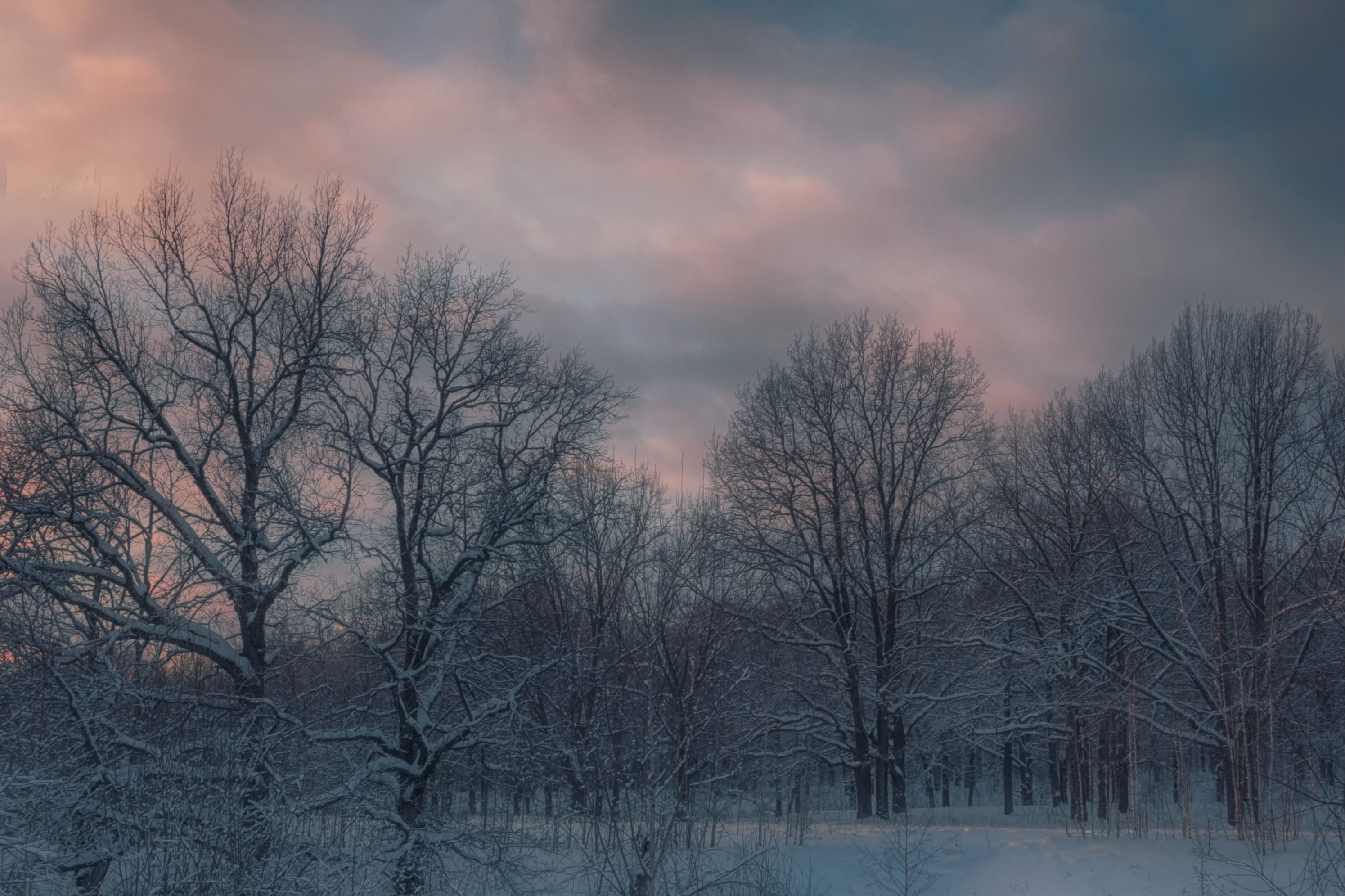 лес снег закат, Вера Петри
