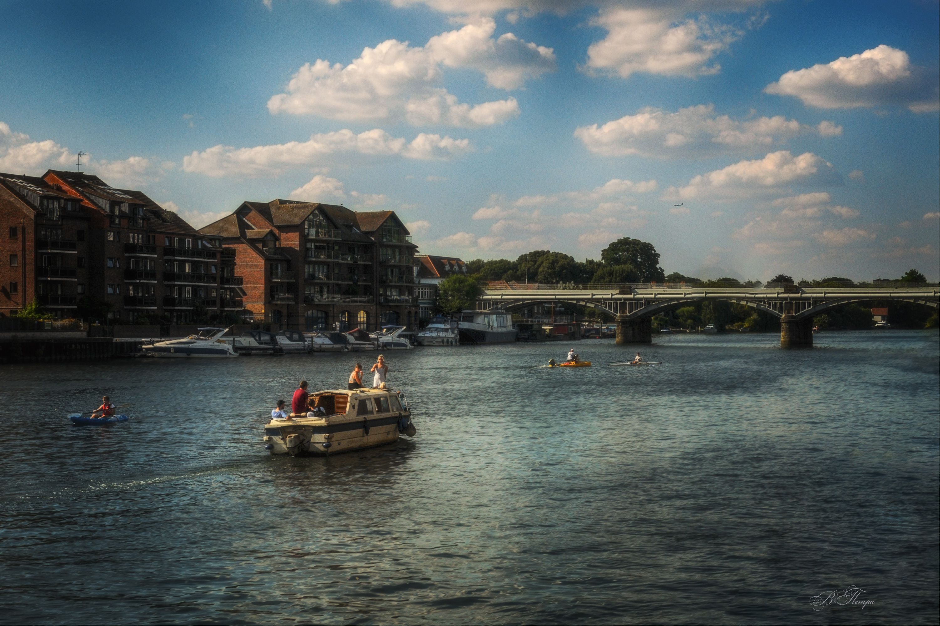 река катер люди мост, Вера Петри