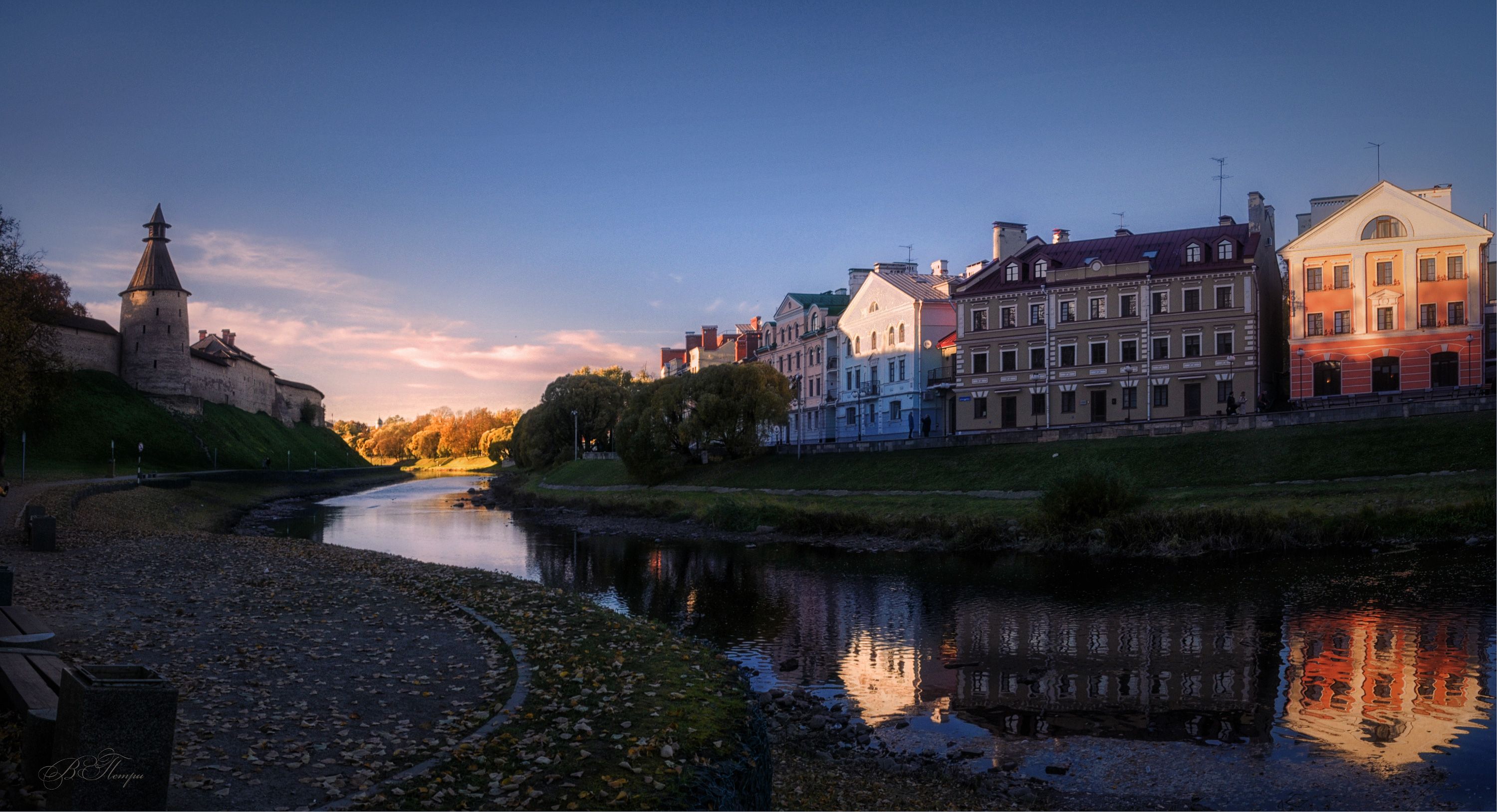 дома отражения речка деревья, Вера Петри