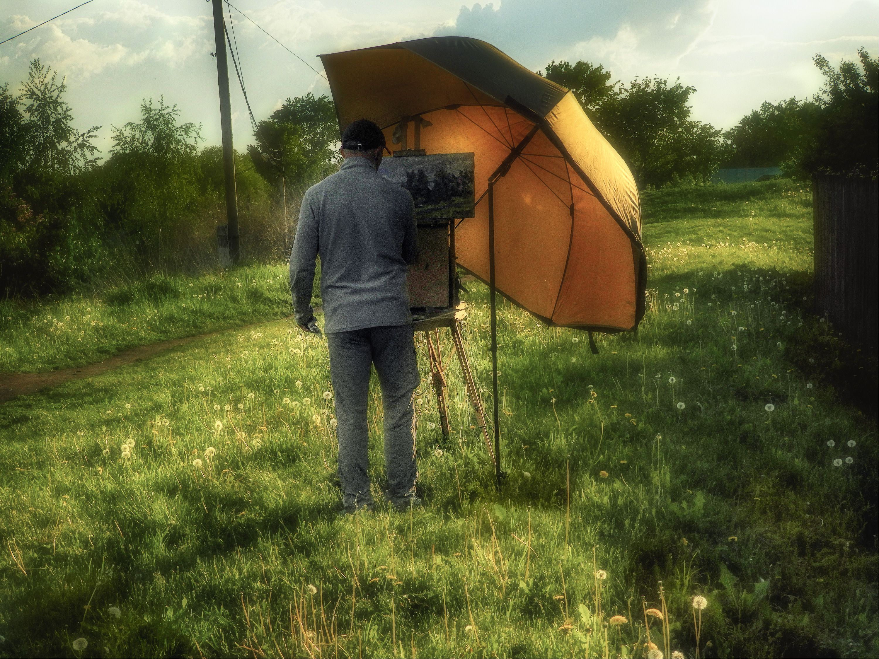 художник мольберт зонт одуванчики деревья, Вера Петри