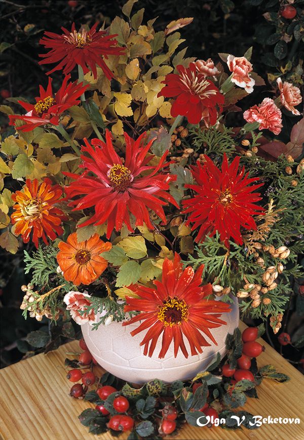 цветы, шиповник, циннии, Бекетова Ольга
