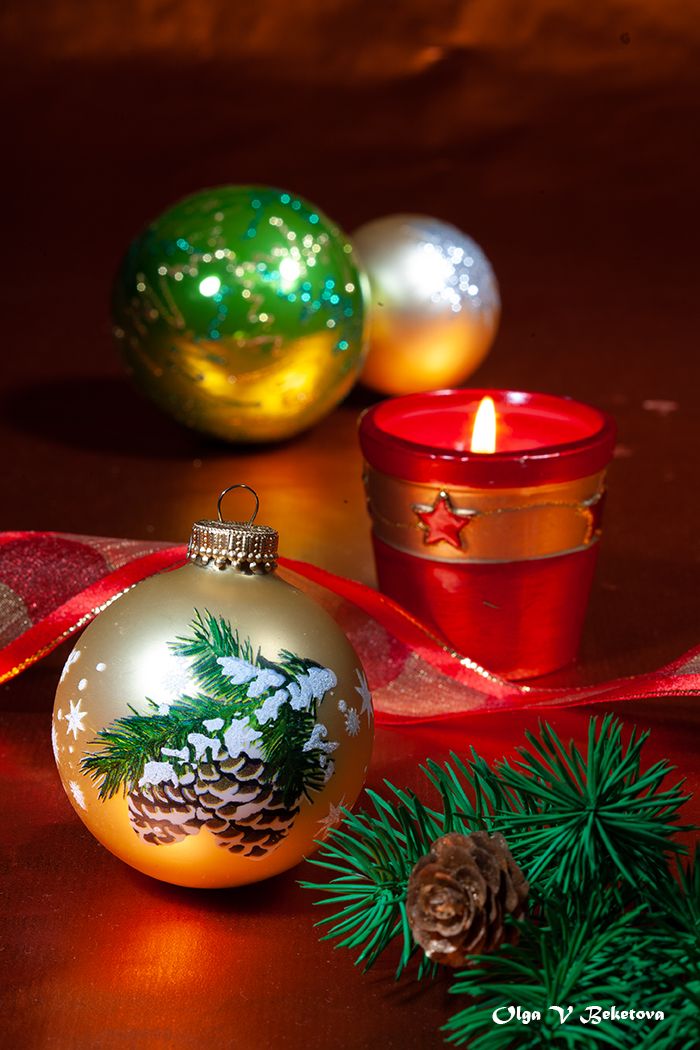 натюрморт, шарики, елка. шишки, Бекетова Ольга