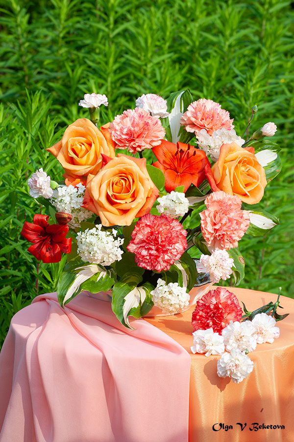 натюрморт, цветы, розы, гвоздики, Бекетова Ольга