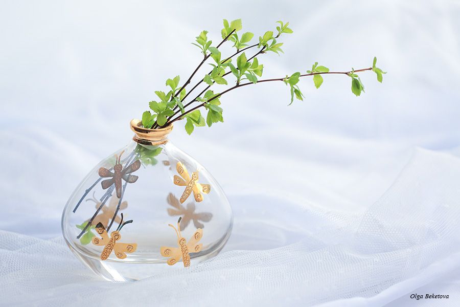 веточки, стеклянная вазочка, натюрморт, белыйфон, Бекетова Ольга
