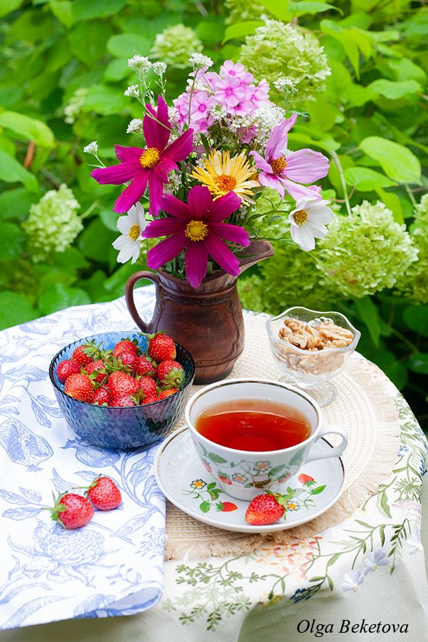 натюрморт, клубника. цветы, космем, Бекетова Ольга